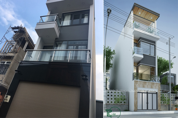 Thiết kế mặt tiền hiện đại của nhà ống 2 tầng